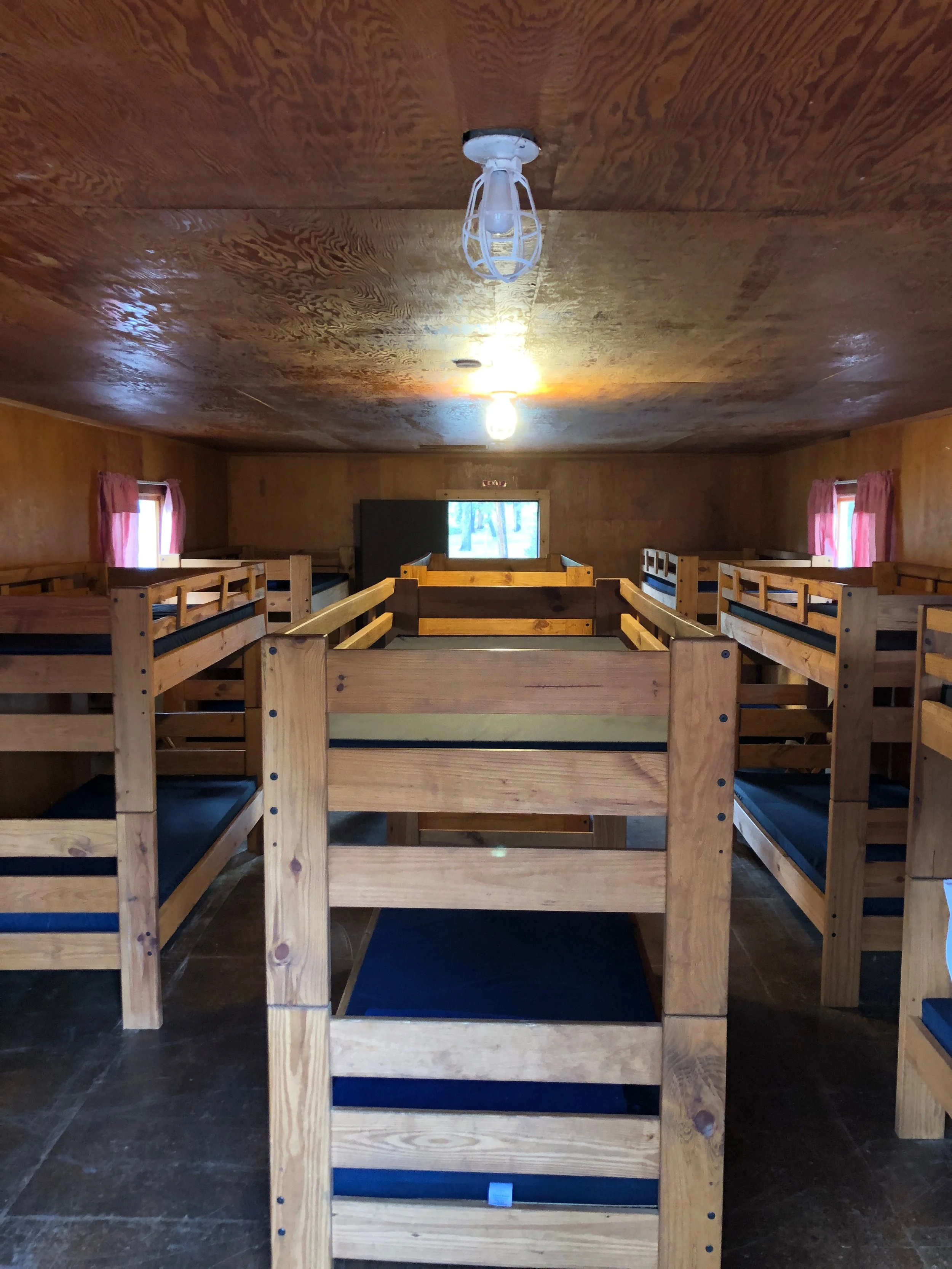 We offer full facility rentals on a nightly rate. Event Rentals include the use of all cabins (three 16 bed bunkhouses, and 16 beds in four smaller cabins, 64 beds total), all utilities and paper products, water, firewood, and access to games and supplies (cornhole, giant soccer, volleyball, etc.).